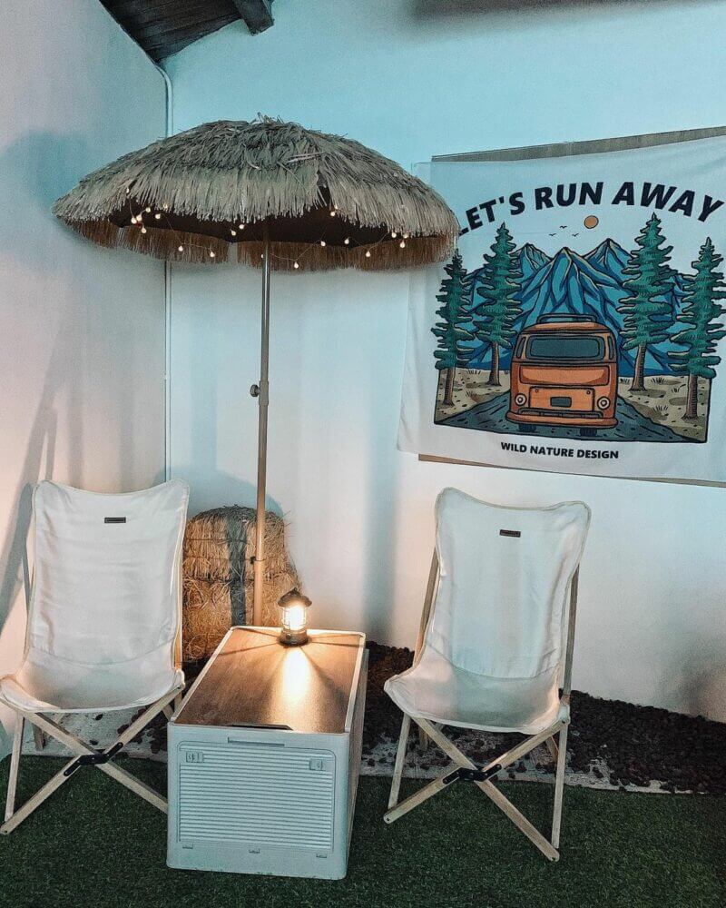 宅度假staycation是一間位2022年底新開幕的花蓮露營風餐酒館,保留老宅原貌,從裝潢設計到桌椅餐具扎扎實實充滿著露營元素,露營椅、投影幕、帳篷、火堆、木柴、燈每個細節角落都不馬唬。調酒採均一價,每杯調酒的名字充滿特色,喝起來十分順口,餐點部分也幾乎沒有雷的,配酒很剛好,只要踏進這間超chill的城市露營風酒吧,很難不愛上這裡。