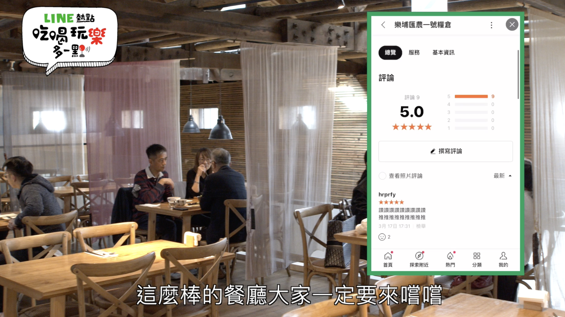 繼米其林餐盤推薦的樂埔町之後,兩人接著利用LINE熱點找到了另一家位於台北市松山區很有特色的餐廳—「樂埔匯農一號糧倉」(立即收藏❤),這是一間老屋結合餐廳與超市的創意餐廳,網羅台灣各地的優質食材,更名列米其林必比登推介餐廳之一。