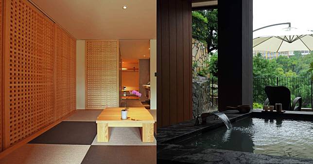 來到北投「享溫泉」從門口簡約又獨特的清水模建築外觀,到館內充滿山林綠意感的設計,都讓人感受濃濃日式簡約、自然放鬆的氛圍,擁有五種不同湯屋房型,有灰黑色的日系簡約風,也有充滿日式風情的日式榻榻米房,其中「享泉套房」更擁有獨立的和式休息區,以及專屬的半開放式的浴池空間,坐在充滿陽光綠意的窗邊泡湯好享受,不能飛去日本,來這也很舒適!