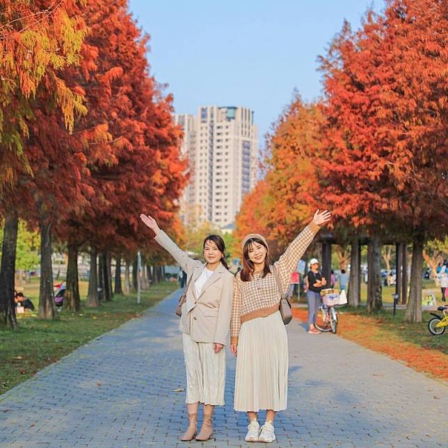 台中擁有許多綠意盎然的公園,但又以北屯的萬坪公園特別引人注目,除了IG打卡夯點的米奇樹之外,最近公園內的落羽松大道也都已轉紅,近百公尺的落羽松大道排列佇立在步道兩旁彷彿在迎接賓客的到來。