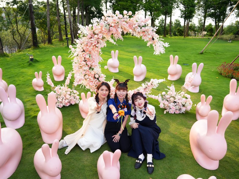 活動期間除了將販售城堡特色產品的「日沐小舖」變身為節慶感滿滿的萬聖節小屋外,園方更在「幸福鐘塔」旁的大草原用精緻花藝和兔子裝置打造了少女感爆棚的拍照景點,被粉色兔子包圍的浪漫景象只有在這裡才能看見!