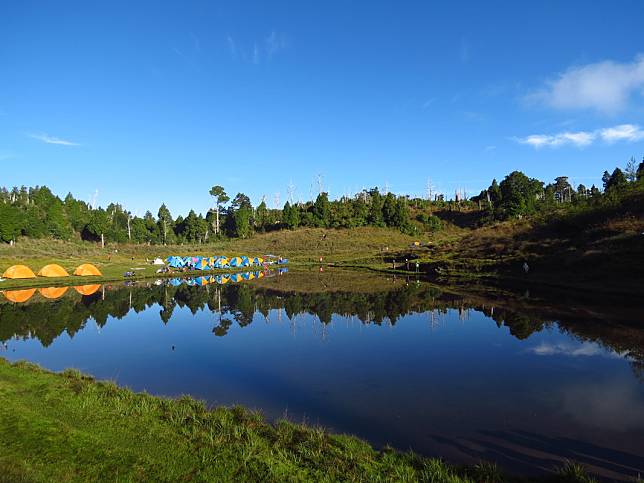 來到加羅湖露營,不只可以欣賞山林景緻,還能看到藍天青山倒映在湖面的秀麗美景。