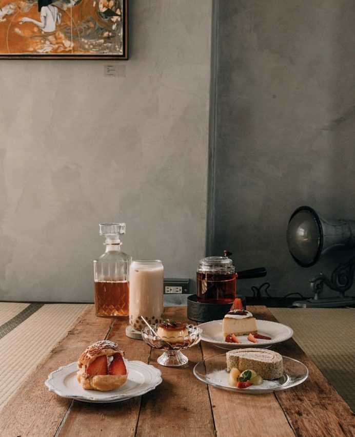 距離文化路夜市的噴水圓環很近,藏身在昔日充滿藝術氣息的成仁街,木更咖啡把清水模用來改造整個老宅空間,隱身在小巷的咖啡廳,店面低調俐落,沒有明顯的招牌,店內復古的裝飾品、藝術收藏與畫作,與不擁擠的家具擺設讓空間舒適又活潑。菜單種類不算多,飲品提供小農鮮乳、鮮乳歐蕾、義式咖啡、單品咖啡、精品茶、氣泡飲,餐點有戚風蛋糕、檸檬塔跟瑪德蓮,低消每人 $100,禁帶外食。其中戚風蛋糕是這裡的熱門甜點,也是IG上最常打卡的餐點喔!