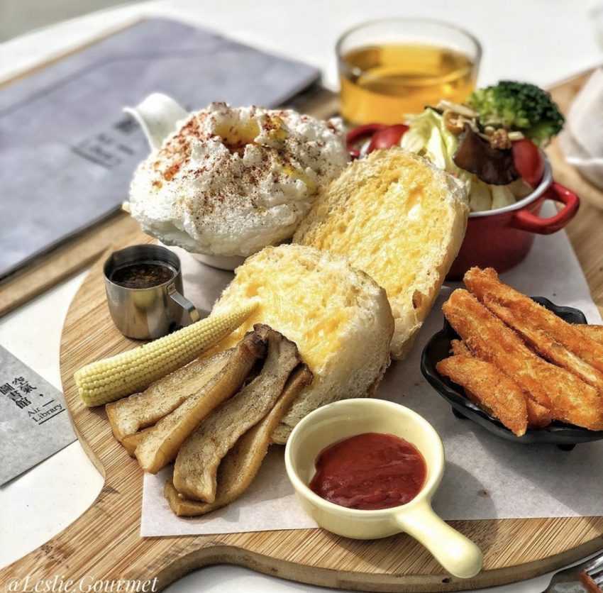 結合了人文、文創與植栽的半開放式空間,使用了大量的蘭花、蕨類及植栽,種滿整個室內,水泥與叢林的結合,營造出都市與山林的共融感。經營模式與書店類似,即使不消費也可以入內參觀,空氣圖書館以植物為主角,注入藝術、美學思維,沉浸在花草、土壤的氣息中如同閱歷無數書籍,喜歡的植栽還能買回家喔!館內另提供早餐、鍋物、定食、下午茶及飲品,不管是到此喝喝下午茶、或是與家人好友共進美食,整個空間都令人感到既清新又有格調!