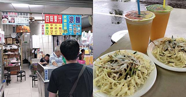 涼麵加美乃滋會是什麼滋味?位在陸橋下的40年老店「四味果汁」,其實吃起來比起一般涼麵更是格外清爽,美乃滋中和了芝麻醬的油膩感,吃多也不會膩口,一定要再配上一杯店內招牌「四味果汁」將四個完全不相干的水果下去打,包含木瓜、芭樂、檸檬以及鳳梨,喝起來可是清涼到沒話說,店家將果肉渣瀝得非常乾淨,大口暢飲不是問題也不會被渣卡到。