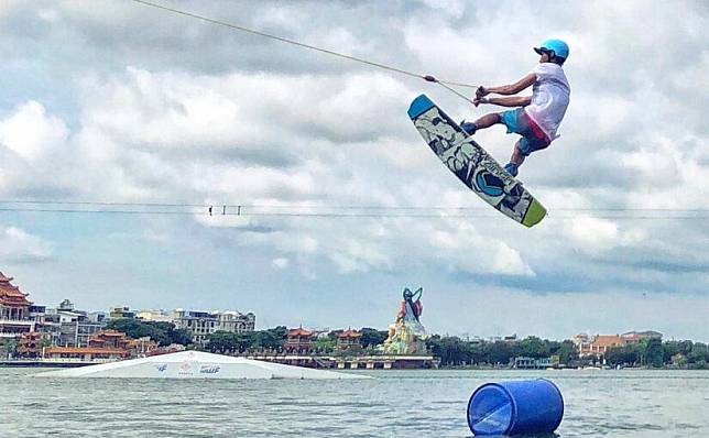 來到蓮池潭除了參觀廟宇,還能體驗水上活動,蓮潭滑水主題樂園是以纜繩滑水為主題的滑水樂園,也是全台唯一的環狀纜繩滑水場,不只有國際水準的纜繩滑水設備,還有大型水上充氣溜滑梯、SUP立式划槳、各式水上娛樂玩具,現場也會有專業的教練循序漸進的方式帶領你體驗,第一次滑水的玩家也能輕易挑戰刺激的滑水極限運動,不管大人小孩都能玩得不亦樂乎。