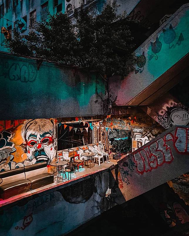 ▲千越大樓在「逃亡計畫」進駐後,有相當精彩的噴漆藝術(圖片來源:IG @kumo5427)