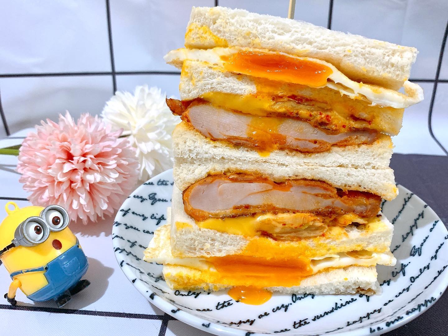 弘記豆漿的炸彈飯糰有別於大家印象中的傳統中式飯糰,以糖心蛋取代菜脯蛋,一整顆切開來,流沙般的蛋黃液、飽滿充實的肉鬆,一顆飯糰就能吃的超滿足!如果怕飯糰吃太飽,也可以嘗試店家招牌粽和蛋餅,煎得酥脆的手工餅皮包覆著滿滿的玉米、起司、肉鬆等餡料,誠意十足,能從食物當中感受到店家對顧客的用心~
