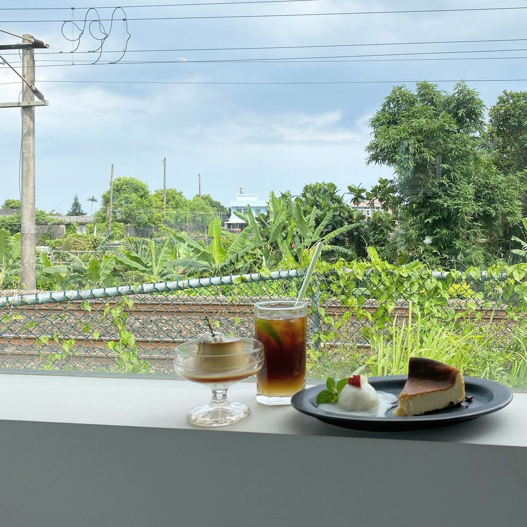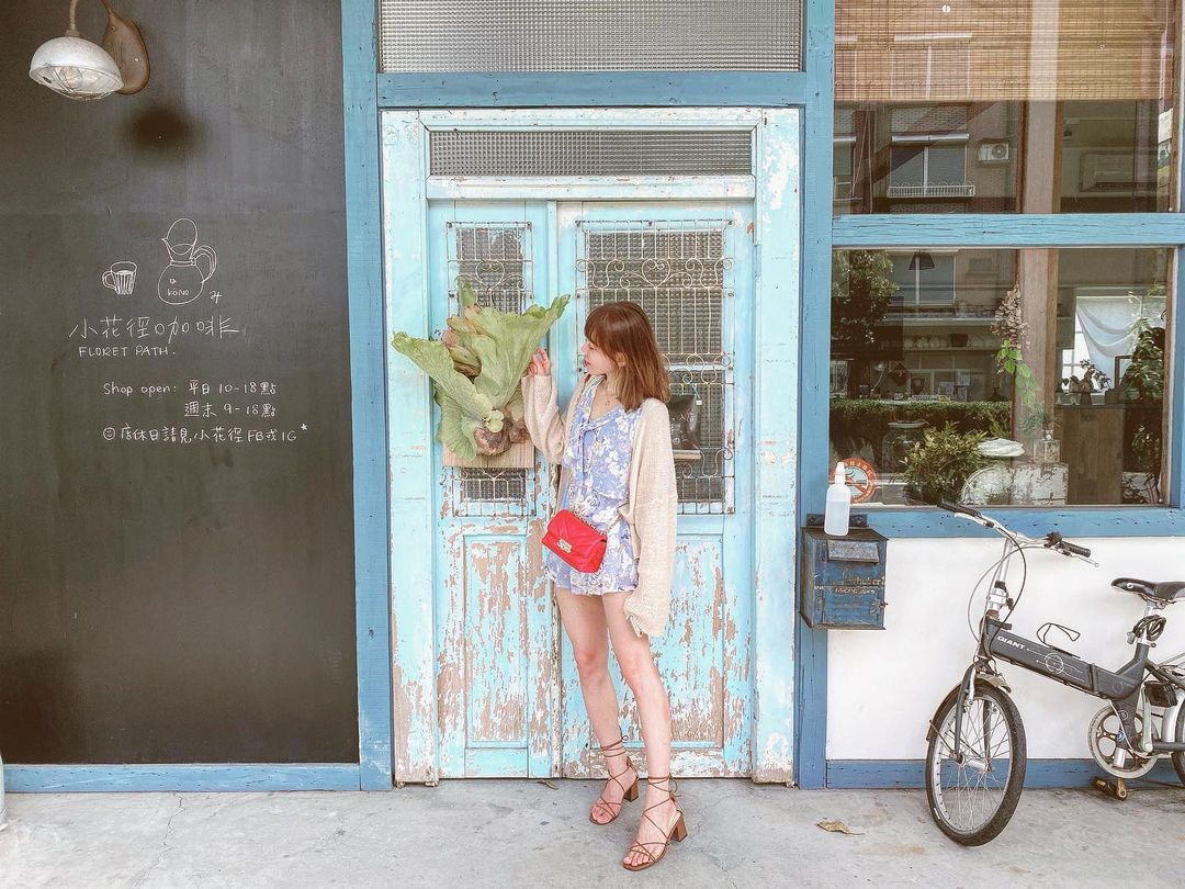 小花徑咖啡的裝潢有點復古,帶點班駁的木門,深藍色木框的窗戶,點綴上綠色植栽,光是門口就足夠讓喜歡拍照的你,拍上幾十張的照片,內部的每個桌子、燭台、吊燈都別具風格且富有巧思。咖啡廳位於鐵道旁,可看到火車從窗邊呼嘯而過,設計成相框模樣的窗戶,讓顧客從店裡看到的每一幕都像照片一般美好。