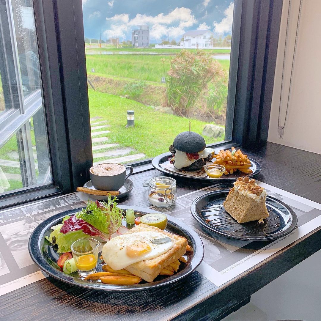 黑宅咖啡是由舊縠倉重新設計並粉刷成黑色,成為名符其實的「黑宅」。黑宅除了咖啡廳,同時也經營民宿,庭院裡主人家設置的戶外鞦韆,吸引每個來到黑宅的顧客,都一定要以綠田藍天為景,坐在鞦韆上拍上幾張美景才行。咖啡廳內部裝潢相當有質感,以暗色系為主軸,配上原本系桌椅,大片落地窗使陽光充份照進室內,給人相當舒服的用餐感受。