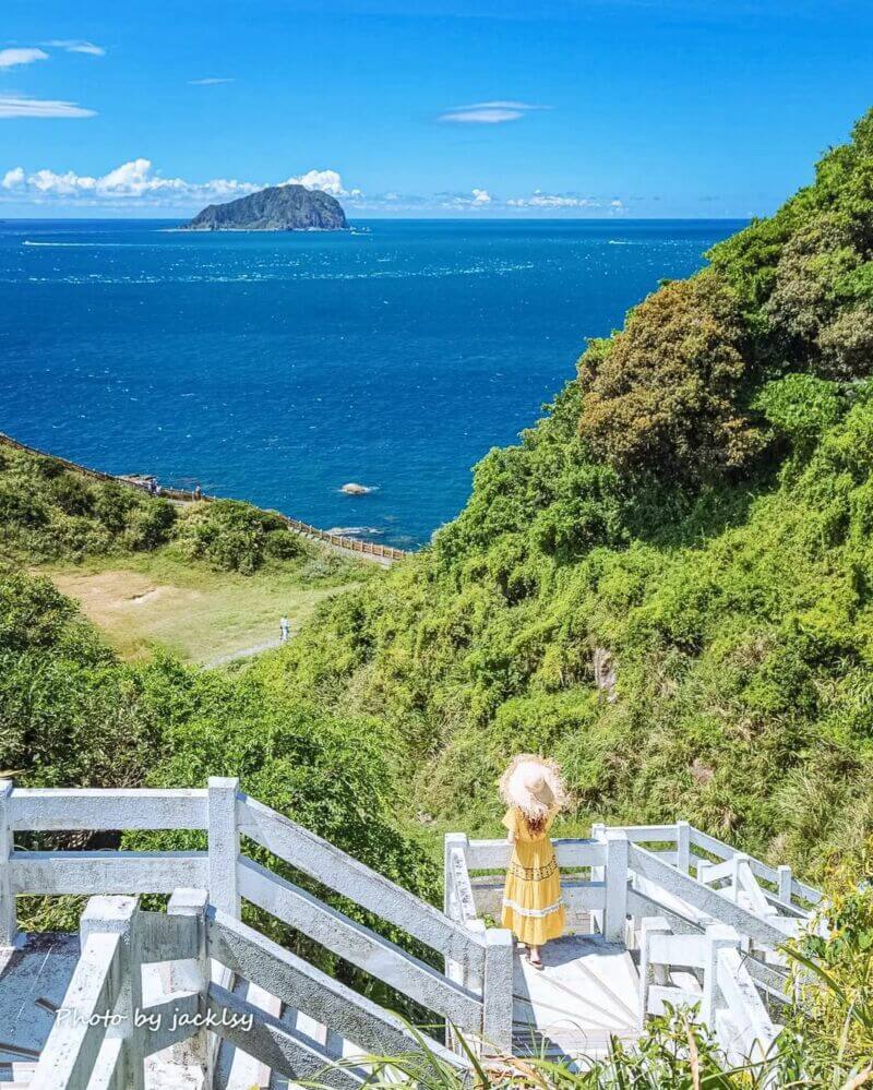 基隆「望幽谷」是一個V字型的山谷,一共有三個入口,分別是鸚鵡螺廣場入口、65高地入口以及油庫入口,而65高地入口的白色階梯及觀景台,是望幽谷的經典拍照打卡點,漫步在環狀稜線及山谷步道中可遠眺基隆嶼,一邊是綠油油的山稜線,一邊是湛藍的海景,美得令人忘憂,不過因為這邊沒什麼遮蔽物,要記得做好防曬準備。
