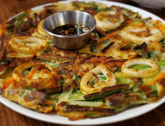 韓式料理中有不少適合聚餐的知名美食,像是銅板烤肉、部隊鍋、年糕鍋,基本上上桌份量都不會太少,也適合聚餐時一起享用,還有這道在韓國幾乎是每個媽媽都會做的韓式煎餅,點上一份大家一起分著吃氣氛更好,無論是經典的海鮮煎餅還是泡菜煎餅都有,韓食控們注意了!愛吃煎餅系列的朋友,往北部這幾間店鎖定就對,快找時間品嚐去。(圖片來源/LINE熱點用戶)