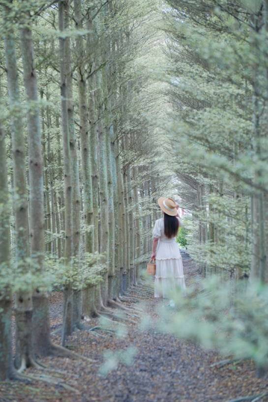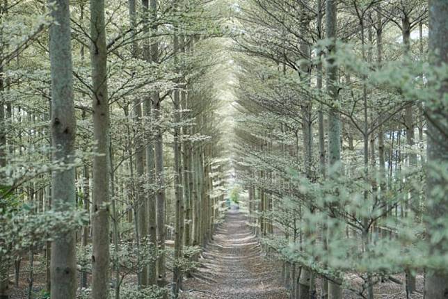 位於彰化田尾的「彩色小葉欖仁樹田」,是近年竄升為IG熱門打卡景點的私人園地,園內整齊種滿高聳的彩色小葉欖仁樹,目前葉片呈現銀綠色,場景隨著光線變化,呈現著不同的樣貌,陽光自然落在葉片上時會散發出銀白光澤,走進森林就像在拍偶像劇一樣浪漫,漫步在靜謐的林道中,時間彷彿瞬間停滯。