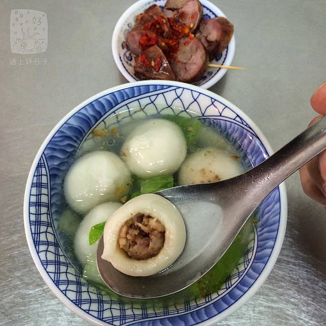 至於鹹湯圓,則是基隆仁愛市場的大觀園,一碗5粒,夏天配小白菜、冬天加茼蒿。然後,一定要再配一小碟豬肝腸。