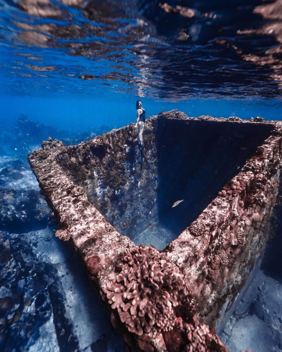 水下5米處有一座超夢幻的綠島版「亞特蘭提斯」,是由早期舊碼頭爆破後的石塊堆疊而成,長期經過海水的浸泡,有了斑駁的痕跡,還有許多海洋生物棲息,就成了現在的模樣,宛如沉睡在海中的古城般浪漫唯美。