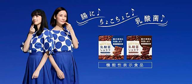 才上市半年就達到20億日圓銷售額的乳酸巧克力,因為加了有整腸效果的乳酸菌,還能夠放鬆身心,滿足低脂零糖需求的巧克力控們。由巧克力將乳酸菌完整的包覆在巧克力裡面,可以防止乳酸菌因為熱或酸在抵達腸道前陣亡,確實達到整腸的效果,效果不輸優酪乳喔!