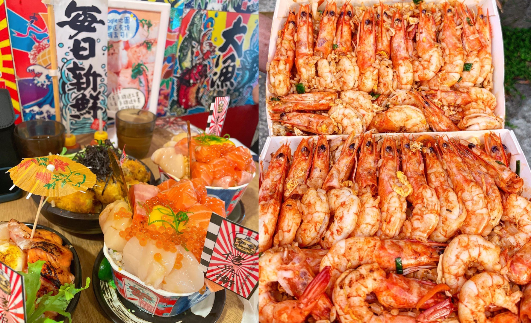 到底要多浮誇!走進位於台中的「信兵衛手作丼飯壽司」彷彿一秒穿越到日本,視覺超強烈、極致浮誇的視覺饗宴,無論是裝潢或是餐點都超日式、超浮誇。許多人都為了店內的「爆鮭丼系列」慕名而來,醋飯上鋪滿了各式各樣的海鮮,真的是沒在跟你客氣的,每一碗都滿到爆出來!如果是肉派的讀者們也可以選擇爆牛、豬丼,菜單上超過50種的丼飯選擇!絕對會有你想要吃的!