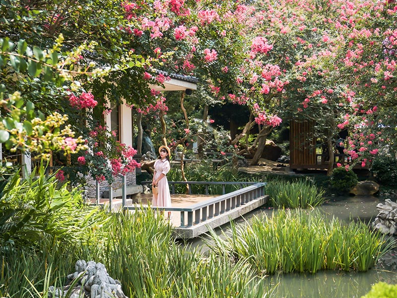 走進盛夏的日式庭園內,欣賞浪漫優雅的紫薇花,漫步在綠色池塘與水上茶房,品杯茗茶,享受日系典雅的午後時光,來到田尾放慢你的生活步調,來場悠閒的輕旅行吧!