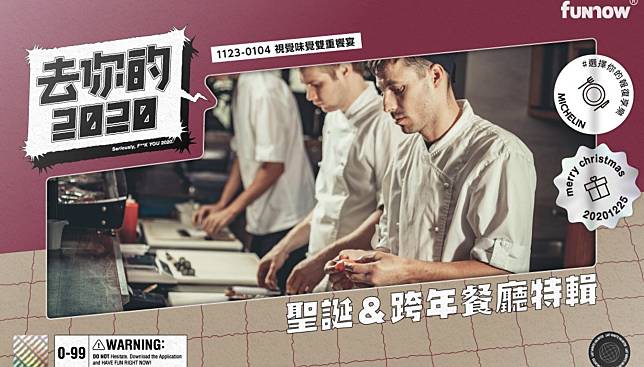 年末活動來襲,R U READY?相信看完上面介紹的餐廳,對年末聚餐還沒準備好的你,應該有些想法了!FunNow 小編先在這邊恭喜大家,即將度過讓人煩悶的 2020!最後就 We wish you a Merry Christmas and Happy New Year!