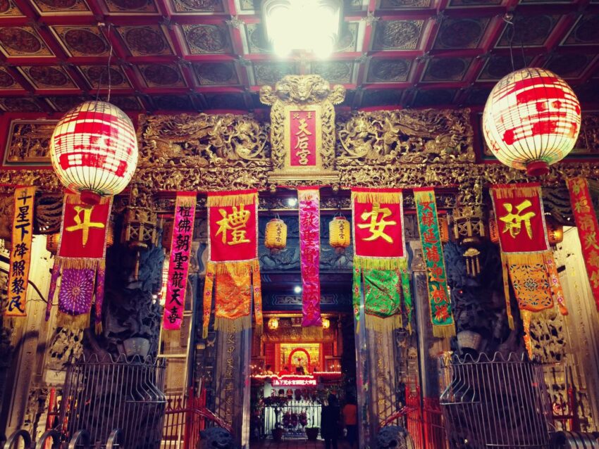 台北天后宮,又稱西門町媽祖廟,位於西門町熱鬧大街上,主祀天上聖母媽祖。清治時期曾位於青山宮附近,日治時期強制遷至龍山寺,二戰後才遷到位於西門町的「弘法寺」,也就是現在的位置。台北天后宮隱身於西門町的熱鬧的商店街中,入口大小與兩旁店家並無二致,而進去後似乎踏入另一個世界,鬧中取靜的台北天后宮,在裡面有一股寧靜的力量,讓人不覺得自己身在西門町呢!