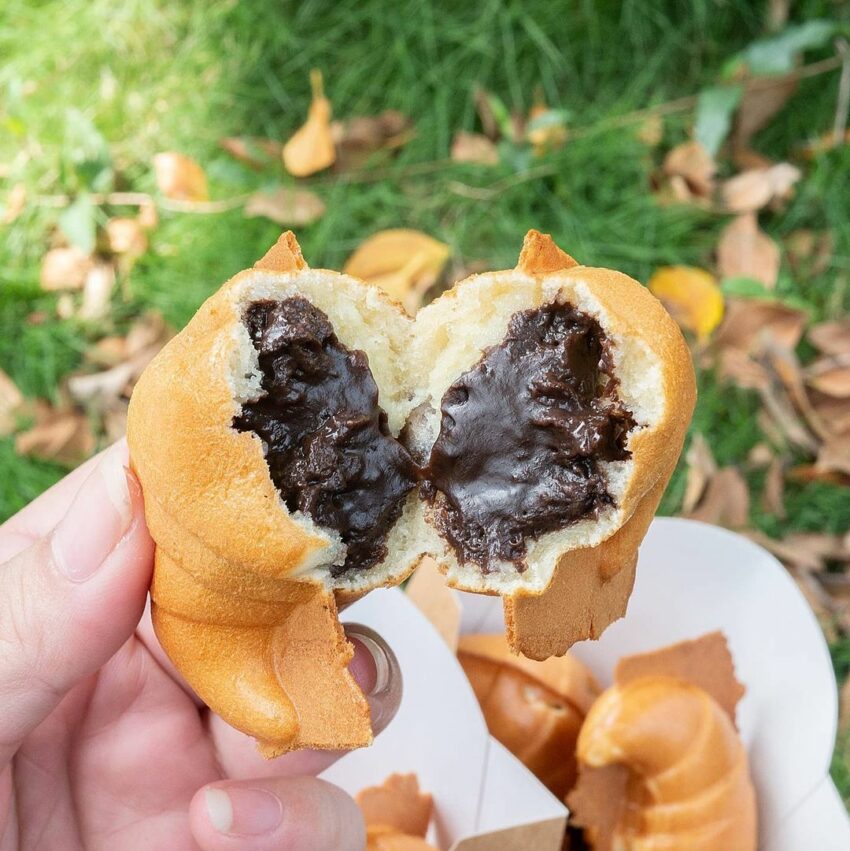 三峽不是只有牛角麵包!這家位於三峽老街的真本家,結合老街及三峽特有名產金牛角的概念,推出可愛的「真角燒」,將雞蛋糕外型做成牛角的形狀,而且口味多樣,甜的有原味、紅豆、紅茶等,以及鹹的蘿蔔絲、鮪魚玉米,每天還有限定口味,現點現烤外酥內熱呼呼!推薦2款熱門口味,分別為內餡濃郁的「牛奶口味」、以及真的很牽絲的「牽手起司」口味,喜歡吃雞蛋糕的千萬別錯過啊!