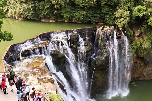 觀瀑平台3在角度上比較偏一些,讓視野更加廣闊,是拍攝十分瀑布最好的觀瀑點。跟瀑布的距離適當,也很適合跟瀑布合照。當然適合拍照的點人潮就是會比較多,拍照需要一點耐心。一路順著園內的遊園觀瀑動線指標前進,最後就會繞一圈回到原處。