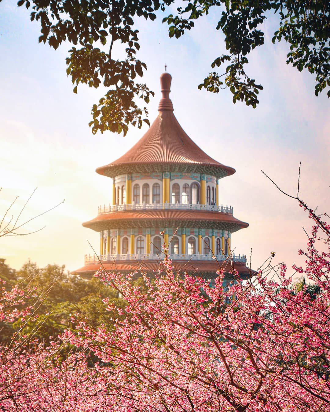 淡水天元宮,距離捷運淡水站約6公里,自行開車、搭乘接駁車或市區公車都能前往,是北部賞櫻熱點之一。每年約1月底至2月中旬,以台灣山櫻花和日本櫻花嫁接成的三色櫻,率先於天元宮後山開放,無數嫩白、淡粉花瓣織成春天氣息;天壇周圍的吉野櫻花期較晚,約3至4月才會盛開,繽紛嬌豔的奇景,一點也不輸國外。近期因應疫情,為避免人潮群聚,夜間或線上賞櫻也是不錯方式。