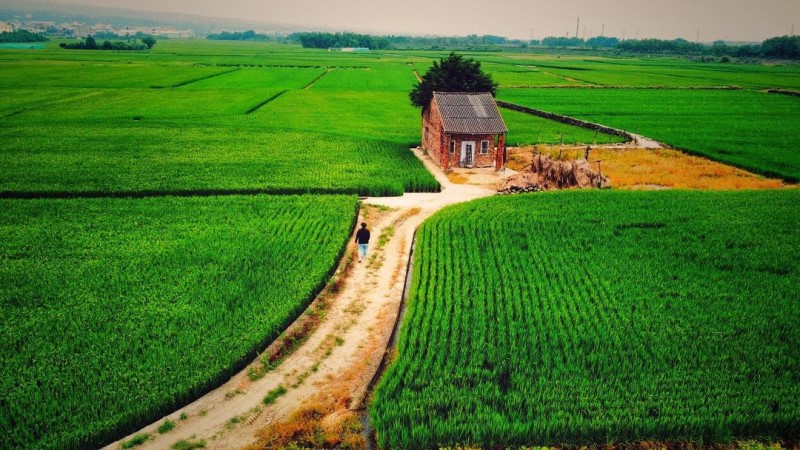 位於彰化芬園鄉寶山國小後面有一大片綠油油的稻田,蜿蜒的小路搭配紅磚厝的景色和一望無際的天空,讓人想起古早時期簡單卻也快樂的歲月,在田野邊玩耍、在水溝旁抓魚蝦,那些畫面歷歷在目,讓人重回最真的感動。