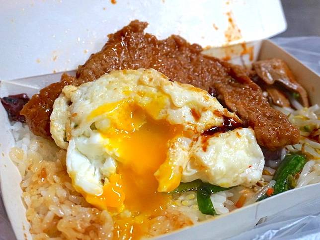▲半熟蛋 $10,蛋黃淋在白米飯上增添了香濃滑順的口感,單點一顆半熟蛋讓自己的便當更豐盛吧!