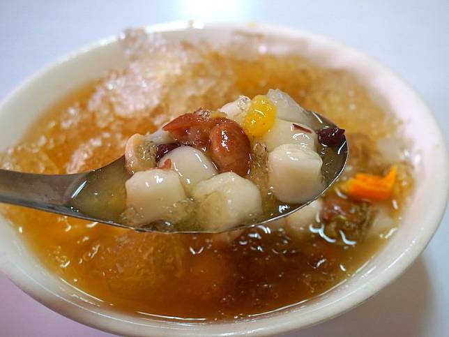 ▲八寶冰 $30,剉冰上有八種配料「紅豆、綠豆、大豆、花生、蕃薯、鳳梨、湯圓、脆圓」,淋上古早味糖水甜度吃起來剛剛好,在夏天來一碗八寶冰清涼又消暑。