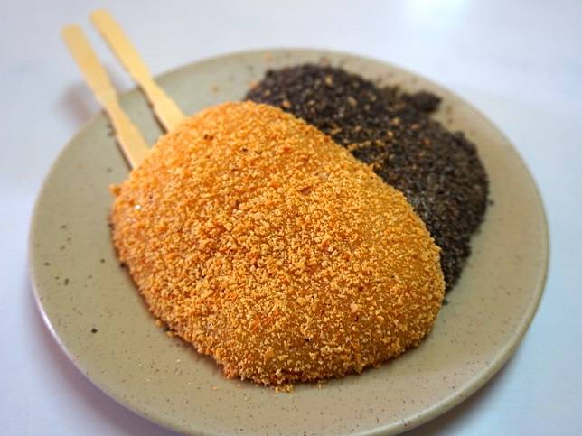 ▲燒麻糬 $30,一共有兩種口味:芝麻與花生,將麻糬從滾燙的鍋內拿出,裹上滿滿的花生粉與芝麻粉,軟Q不黏牙的口感,是在地人從小吃到大的特色美食。