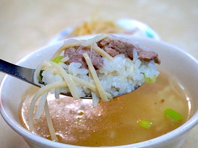 ▲香菇肉粥 $30,白飯淋上微稠的羹湯,重要放入筍絲、豬肉絲與香菇下去熬煮,在晚上或是宵夜時段來一碗鮮甜暖暖胃的香菇肉粥就對啦~