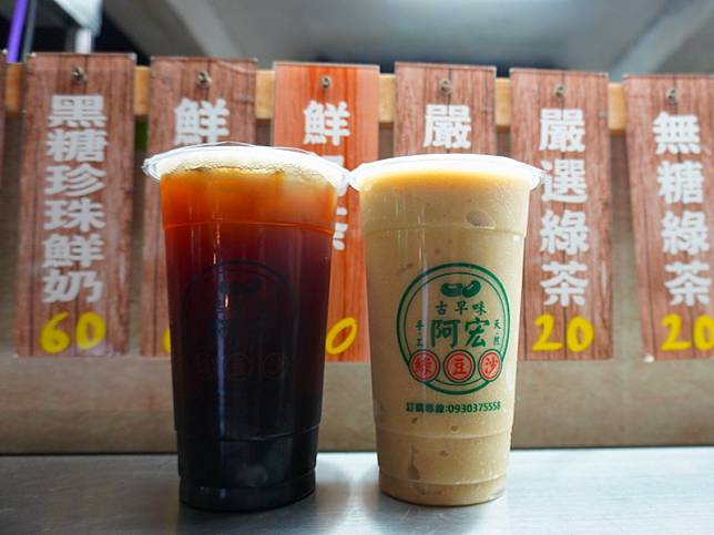 員林老字號【古早味阿宏綠豆沙】遵循古法熬煮,綠豆沙喝起來口感香濃綿密不死甜,是內行人才知道的好滋味。另外,還有一款人氣商品「珍珠紅茶」,使用古早味的紅茶加上Q彈有嚼勁的珍珠,一杯只要25元銅板價錢就喝得到!
