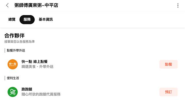 跑跑腿 北部地區立即點擊商家資訊卡下的服務按鈕!