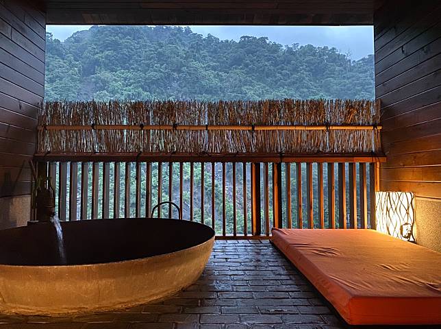大眾裸湯SPA池,還有半露天私人湯屋,邊泡湯邊欣賞南勢溪畔的青山綠水。