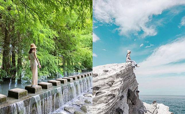 「雲山水夢幻湖」位在雲山水園區中,是一座四公頃大的人工夢幻湖,也是知名廣告場景。而夢幻湖的源頭有座落羽松森林,要走到對面可是要走在水上的石磚步道,走上攔水壩形成的細流瀑布,流水潺潺好似牛奶瀑布,難怪會成為熱門的 IG 打卡景點!