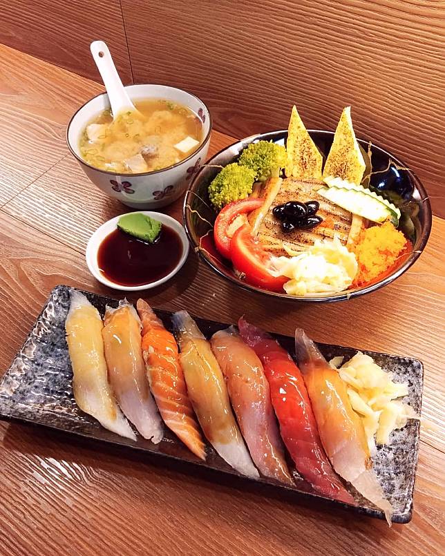 鈺刺身丼主打刺身、握壽司、丼飯的鈺刺身丼位在仁愛市場內,是連在地人都很捨不得推薦的隱藏美食名單!營業時間只到下午三點,晚來可就賣光了~~最推「綜合握壽司」七貫只要$140!價錢如此實惠但用料一點都不馬虎,厚實飽滿的魚肉吃得出新鮮,就連$20的味噌湯用料也不手軟,口口都喝到的大塊魚肉呢!