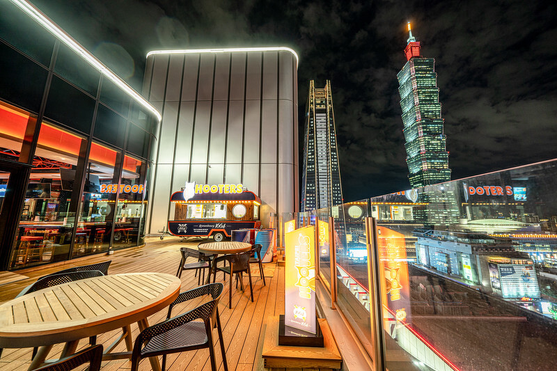 日落時化身彩霞酒吧、夜晚時坐擁璀璨星空酒吧與台北101夜景,擁有信義區的「百萬級景觀」!義店同時將HOOTERS原創精神「健康、歡樂、美食」,信義店將更強化氛圍與服務,表演節目會更密集,並增加全場舞台燈光效果,有用餐看表演的互動設計。最大的亮點是還會有辣妹店員表演精彩的呼拉圈及熱情的舞蹈,大口品嚐美食還能夠大飽眼福!