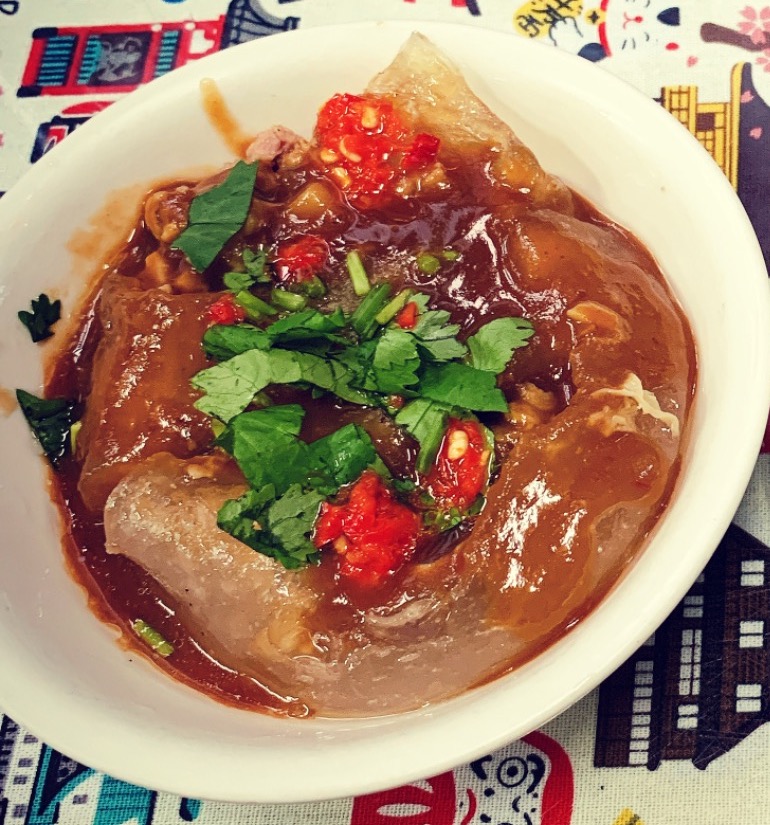 板橋肉圓名店之一,使用自製米漿製成外皮,包覆著大塊黑豬肉與筍絲,搭著鹹甜黑醬就是美味。