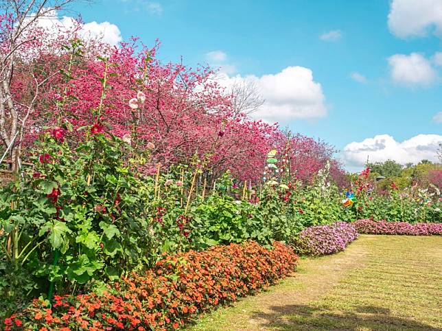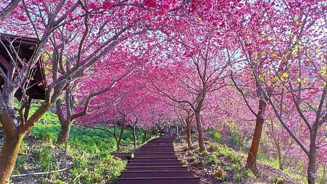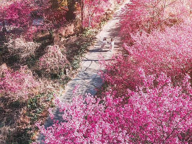 新社這處櫻花鳥森林可以同時能賞櫻又看蜀葵花!這裡有餐廳、露營區,且擁有大面積的櫻花林及可愛的小火車,業者還引進多達100餘顆的香水櫻花種植在園區內層層堆疊的石籠上,淡淡的花香瀰漫在露營區中,花期預計開到2月底,有計畫賞花的朋友別忘了收藏進口袋名單中。此外櫻花鳥森林也有提供和服租借服務,有興趣的朋友可別錯過!