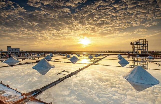 以厚約6公厘的瓦缸片鋪成的瓦盤鹽田,為台南濱海最具特色的景點,每日絢麗的夕陽照射在鹽田上,倒映出美麗的光彩,呈現出馬賽克拼貼般的美麗藝術,與周圍潟湖形成一望無際的天際線,絕美的景色總是吸引著許多攝影愛好者與賞景的遊客,是來到台南濱海不可錯過的景點。