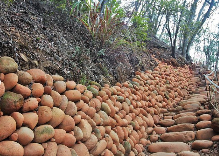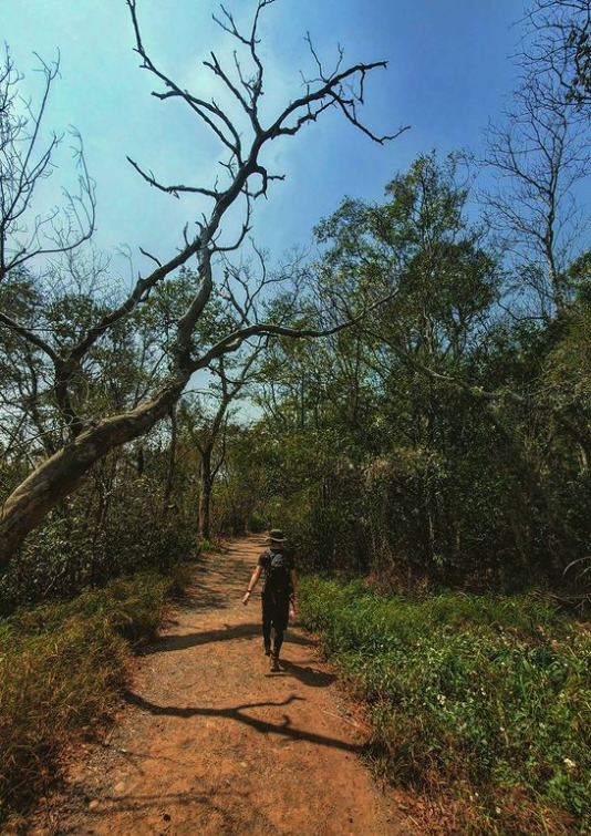 回程經由南鞍古道體驗火炎山不同的風光,回程的南鞍古道全程大多是鵝卵石或是平整土石路的緩下坡,且植披相對於前半段上山時多了許多不至於太熱,相較前半段上山時的路線是相對好走的,一路上也都設有指標,不會迷路。