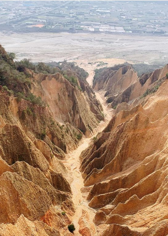 位於苗栗「三義」與「苑裡」交界的火炎山,是雪山山脈沖積下來的礫石岩層,經過地殼運動隆起的產物,其山峰上岩層裸露,少有植被,容易受到豪雨的沖刷,是台灣罕見的惡地地形景觀;火炎山火紅的山峰激似美國大峽谷,因此有「台版大峽谷」的美稱,也是網美打卡必去的景點之一。