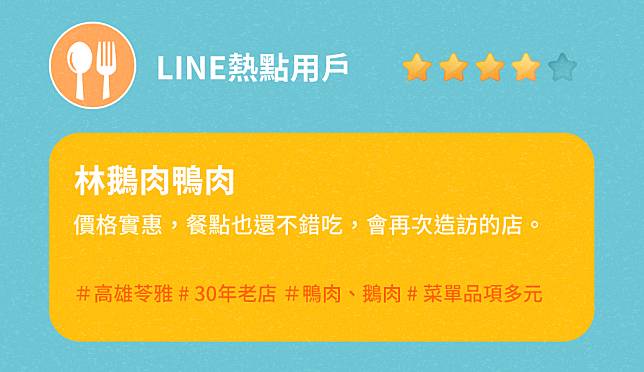 開業超過30年、兩代傳承,「林鵝肉鴨肉」顧名思義就是有鵝肉也有鴨肉!各種鵝肉及鴨肉的料理,飯、麵、米粉,乾拌或作湯都有;再切一盤鵝鴨肉、米血糕、炒個下水菜或是紅燒虱目魚、來碗鵝腸或鵝心湯,就是完勝的一餐!