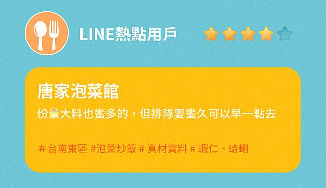 唐家泡菜館的泡菜炒飯是很多人心目中的第一名,滿滿的海鮮加上酸甜的泡菜超級開胃,如果想吃麵、冬粉、或是海鮮粥這裡也都有。每道菜都是真材實料,蝦子不是蝦仁而是鮮蝦剝殼、透抽也是又厚又肥嫩、蛤蠣又大又飽滿;銅板價格就可以吃得飽,絕對是超高CP值的道地小吃。