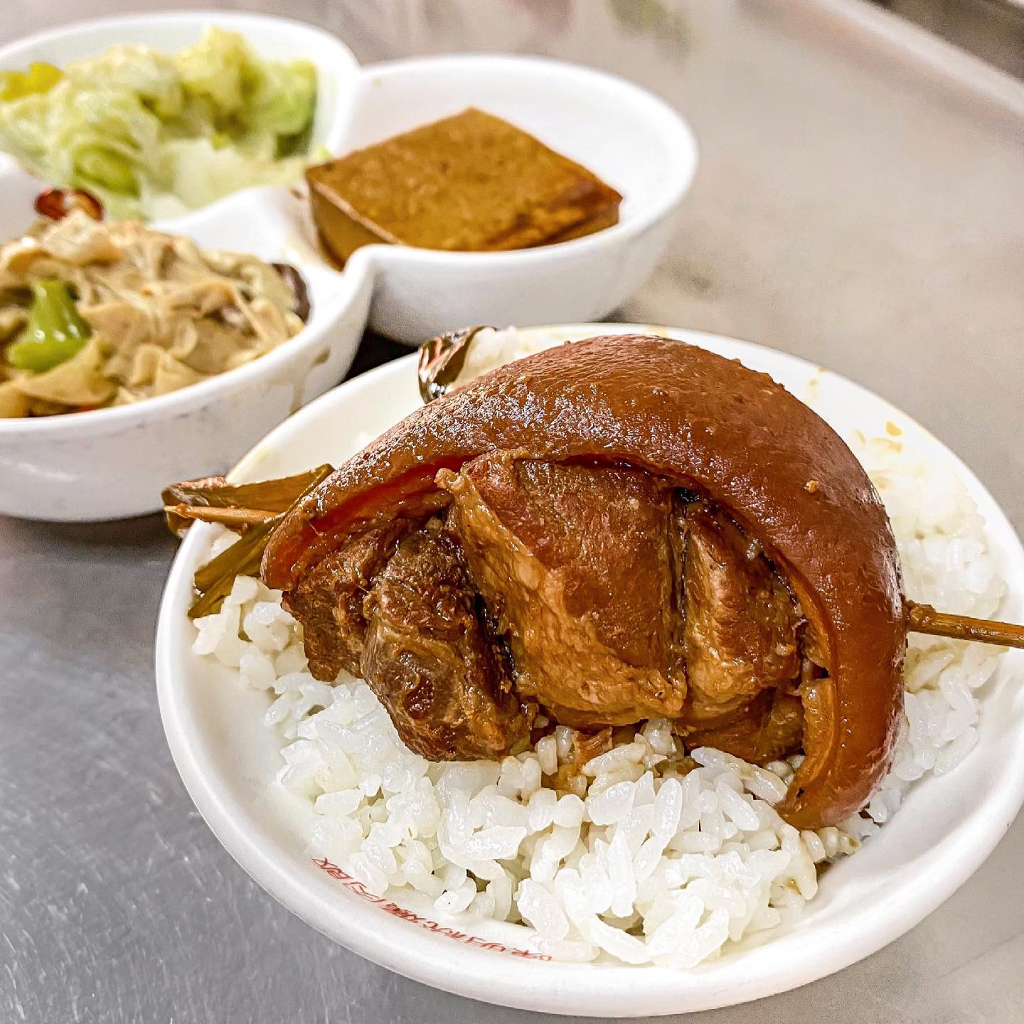 經營半世紀的老字號陳明統爌肉飯,爌肉以冰糖、甘蔗及秘製滷汁歷經三小時細心熬煮,入口即化,鹹甜滷汁十分下飯,還可以依照喜好選擇部位,白菜滷等小菜,滿足加倍!