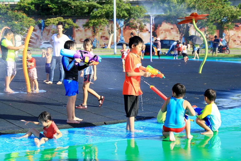 嘉義民眾最愛的【竹崎親水公園】於7/1正式開放,【竹崎親水公園】規劃有許多親水活動設施區,戲水區設有自動噴水設施,暑假期間每星期四到星期日都能在園區內盡情玩水,玩著水上溜滑梯或是套個游泳圈浸泡在水中,一解炎炎夏日帶來的暑氣。