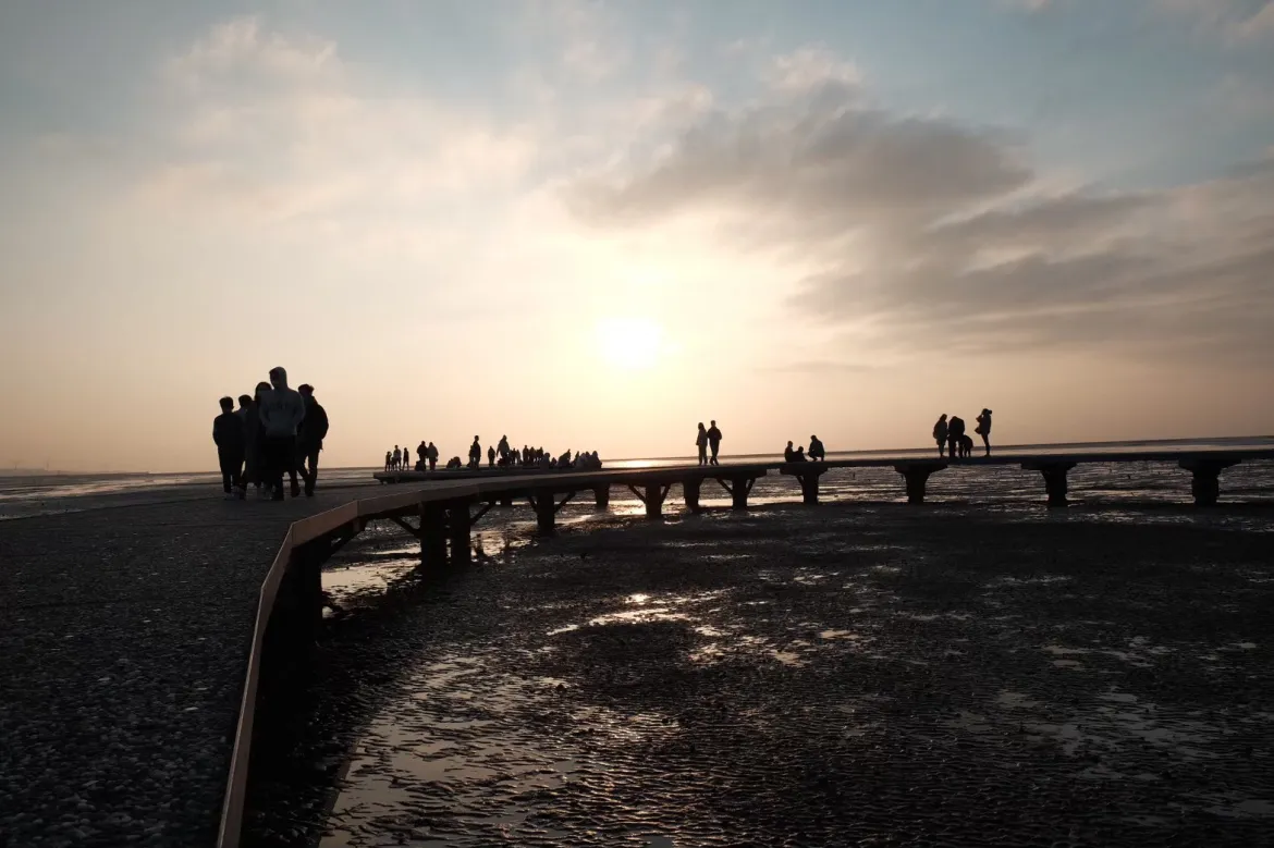 號稱「北部版的高美濕地」,香山濕地是國家級重要濕地,這裡也有一條賞蟹步道,不僅是賞夕陽的好地方,還可以近距離觀察濕地生態。香山濕地最熱門的除了夕陽美景,便是心形石滬延伸的通往海的步道,可說是熱門打卡地標呢!不過如果當日的風強度為6級風以上,步道就不會開放囉!所以來之前務必關注氣象預告!