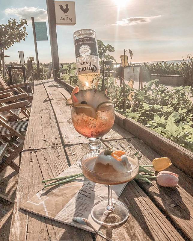 公雞咖啡的餐點分量都很大,可以和朋友點不同的東西一起分食,用一杯調酒來形容這家店酒水的分量不如用一小盆來形容更為貼切。推薦大家在夕陽時分來此用餐,順便在海邊看夕陽。