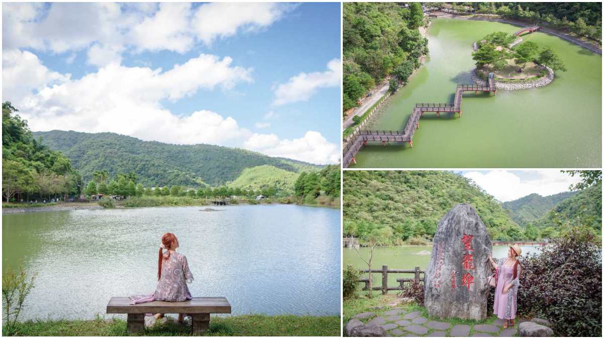 走上湖中拱橋,用不同視野觀湖,具有不同的美感,翠綠的湖景和莊嚴的山層,美得讓人捨不得離開,而望龍埤的石牌地標及望龍亭,都是遊客們來訪必拍的取景點。